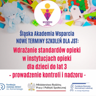 Pracowników urzędów samorządu terytorialnego z województwa śląskiego zapraszamy na bezpłatne szkolenia z zakresu jakości opieki i procedur kontroli w żłobkach i klubach dziecięcych.